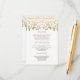 Gold and white floral wedding guest card with information and details about wedding reception, accommodations, directions etc.