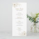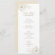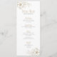 White flowers with fold outline corner border on white background. Customisable wedding menu text template.