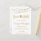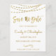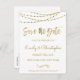 Gold Foil String Lights and Handwritten Script White Simple and Elegant Save the Date Invitation Card.
