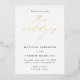 Minimalist, modern wedding invitation featuring your wedding details in simple black lettering with "the wedding of" in an elegant gold foil calligraphy script. The white background can be changed to a colour of your choice. Designed to coordinate with our Modern Elegance wedding collection.