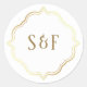 Elegant monogram stickers with gold font colour and white background.