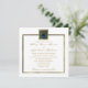 This sophisticated and understated white and gold wedding invitation has a gold framed "eye" of a peacock feather with another intricate gold border surrounding the text. It is shown here on basic paper. All the text and paper type is customisable. PLEASE NOTE that the gold is a FAUX textured finish and is not raised or embossed. If you require any matching items in this design, please email niteowlstudio@gmail.com.