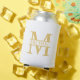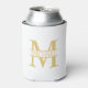 featuring gold personalised monogram in classic serif font style with box of name in the middle of monogram on white background.