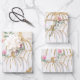 Wrapping paper sheets with fancy watercolor white pumpkins with accents of faux gold glitter. Surrounded by green leaves and pink wild flowers.