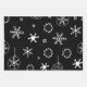 The first sheet features modern white snowflakes against a dramatic black background, creating a striking contrast that exudes chic simplicity. This design embodies the purity of freshly fallen snow on a winter's night, making your gifts wrapped in this paper feel like treasures hidden within a midnight snowfall.