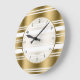 White And Gold Stripes Pattern 3 Large Clock