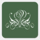 White and Green Flourish Rose Square Sticker