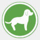 White standing dog silhouette inside a white circle on a green background colour meaning that pets are welcome.