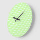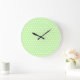 White and Green Polka Dot Pattern. Spotty. Large Clock