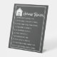 Everyone will be clear on what your house rules are when you have them posted on a pedestal sign. At the top of the sign, there's a white house. The display text next to the house says 'House Rules' Under the house, there are 9 rules: 1. If you drop it, pick it up. 2. If you take it out, put it back 3. If you turn it on, turn it off. 4. If you open it, close it. 5. If you break it, fix it. 6. If you can't fix it, find someone who can. 7. If you soiled it, wash it. 8. If you make a mess, clean it up. 9. If it's not yours, leave it alone.