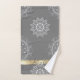 White And Grey Mandala Pattern in a Grey Background. Customise this bath towel set with your/her name.