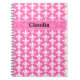 White and hot pink fleur de lys pattern personalised notebook. White fleur de lis pattern on hot pink background and a semi-transparent band with your custom name. A beautiful feminine pattern.