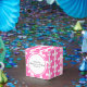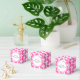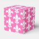 White and hot pink fleur de lys pattern thank you favour box. White fleur de lis pattern on hot pink background.