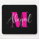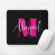 White and Hot Pink Modern Monogram Black Mouse Mat