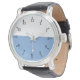 A watch isn't just a timepiece. It's a work of art. You'll love wearing this classic watch with a leather band and white and light blue face.