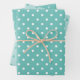 A mix of light and pastel teals with white polka dots for birthday gift wrap.