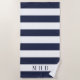 White and Midnight Blue Stripe and Monogram Beach Towel