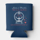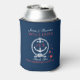 White And Navy Blue Nautical Anchor Can Cooler