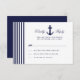 White and Navy Blue Nautical RSVP Card with Rose Gold Stripes designed by Colourful Designs Inc. Copyright 2013-2017.