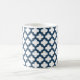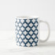 White and Navy Blue Trellis, Lattice, Quatrefoil Coffee Mug