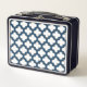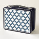 White and Navy Blue Trellis, Lattice, Quatrefoil Metal Lunch Box