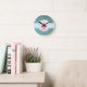 White and Pink Daisy on Turquoise Round Clock