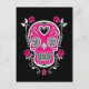 This stunning design features a Day of the Dead sugar skull on a pure black background. Four roses surround the skull with delicate vines flowing down to a five point star at the base of the pattern. A large heart sits in the middle of the forehead with fluid swirls on either side. This beautiful design is a stylish example of this Day of the Dead symbol.