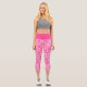 White And Pink Tropical Leaf Repeating Pattern Capri Leggings