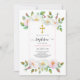 White and pink wild dog rose floral girl baptism invitation. This design showcases garlands of watercolor white and blush pink dog roses with green leaves on the upper and bottom parts and your text in a pink frame. The back is of pink colour.