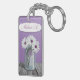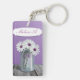 Pretty & rustic country floral double sided Mason Jar keychain is designed with white and purple daisies in the jar, sitting atop a rustic wood table, over a purple background, and personalised with your name. The mason jar has "Love" embossed on it in the illustration.