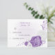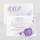 Romantic wedding response card featuring white and purple flowers .