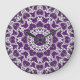 White and Purple Paisley, Kaleidoscope Boho Large Clock
