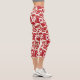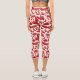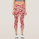 White and Red Flying Leaves Repeating Pattern Capri Leggings