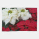 White and Red Poinsettias II Christmas Holiday Tea Towel