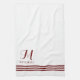 White and Red Sophisticated Stripes and Monogram Tea Towel