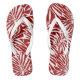 White And Red Tropical Leaf Repeating Pattern Flip Flops