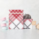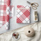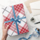 White and red with grey accents plaid pattern wrapping paper
