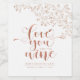 White and rose gold "Love you more than wine" Valentine's Day personalised wine bottle label in romantic and elegant handwriting typography. Customise with short greeting/message and sender/gifter's name.