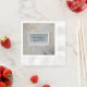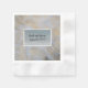 A white ruffle look background featuring a silver faux glitter rectangle with a white border accenting names and date..  This makes for a stunning wedding or event table napkin.  Ready for you to personalize.