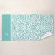 White vintage floral damasks pattern on a turquoise-blue background. Optional monogram.