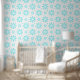 A charming pattern featuring small and large daisy flowers in a subtle gradient – from white to turquoise, set against a light background. The design is completed with irregular, asymmetrical turquoise dots, adding lightness and dynamism. A perfect choice for floral motif lovers and pastel colour enthusiasts. Find more products with this pattern in our collection!