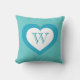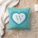 White and turquoise heart - monogram cushion