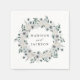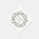 Elegant floral wedding napkins featuring your names encircled by a wreath of white watercolor anemones, ivory roses, and dark sage green leaves. The white anemone wedding napkins are designed to coordinate with our White Anemones and Roses wedding collection.