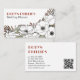 White floral business card with greenery and eucalyptus in a soft boho colour palette among white anemones with your name in a clay red art deco font. Pretty flower business card with a retro font with an illustration of white anemones in a vintage inspired style against a white background with greenery in shades of beige, clay red, grey, and grey-green. Personalise with your QR code, contact info, and in a clay red retro font, your name.