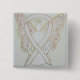 Awareness pin features the painting of a white awareness ribbon angel on a custom button pendant. White awareness angel ribbon art lapel pins or buttons can be customised with personalised messages to make great cause buttons for fundraiser pendants for cancer or other causes, awareness pin gifts, or other special pendant events or awareness lapel pin for cause's occasions.