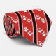 White animal claw paw prints on moroon necktie with black and white stripe.