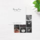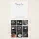 Jewellery business square earring display cards in a modern and simple black and white design with a photo on the back. Personalise it with any colour for the background by clicking the button to edit the design. Features light punch or cut lines, your website, and social media handles. There is enough space to add your address or phone number too if needed.