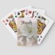 Playing cards with a photograph featuring an apple tree branch displaying its beautiful white apple blossoms.