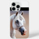 A white Arabian Horse with blue eyes, wearing a jewelled show costume, is printed on Phone Cases.