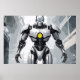 White Armored Cyborg Mecha Sci-Fi Comic Art Poster